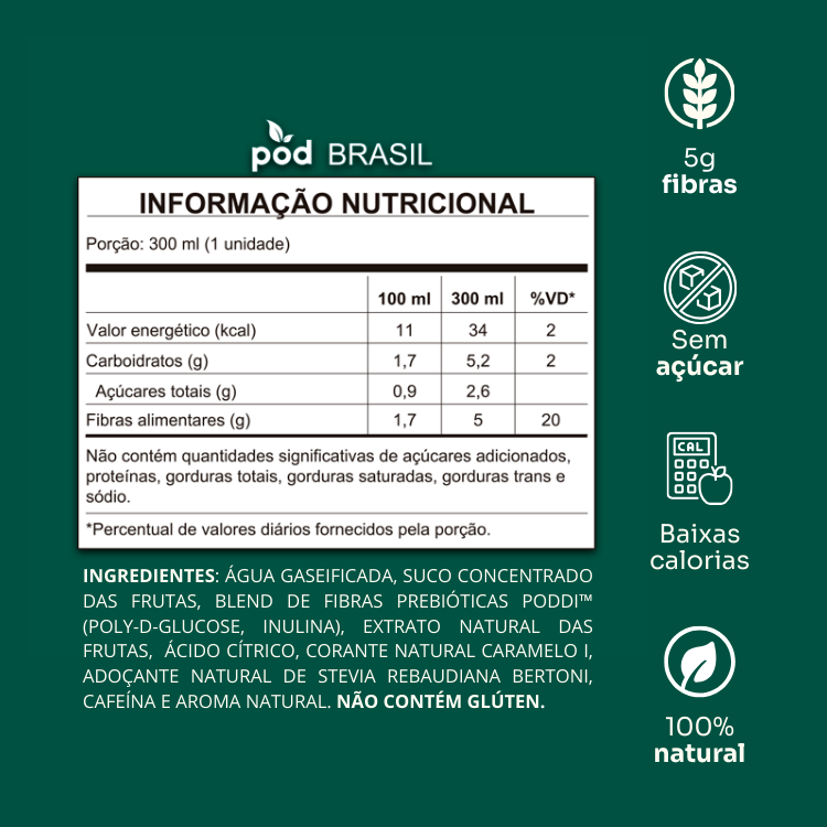 A Poddi usa fibras naturais como a inulina e a polidextrose, que são bem toleradas. Em casos raros, quem tem intestino muito sensível pode sentir leve adaptação nos primeiros dias. Como toda bebida funcional, se estiver grávida, amamentando ou com alguma condição médica, vale confirmar com um profissional.